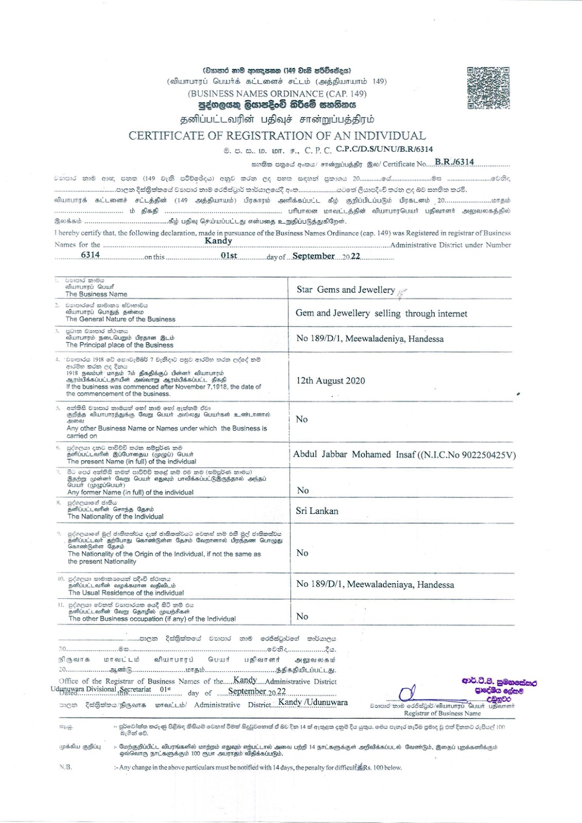 National Gem & Jewellery Authority Licence No. : NU5631/20261DL36671