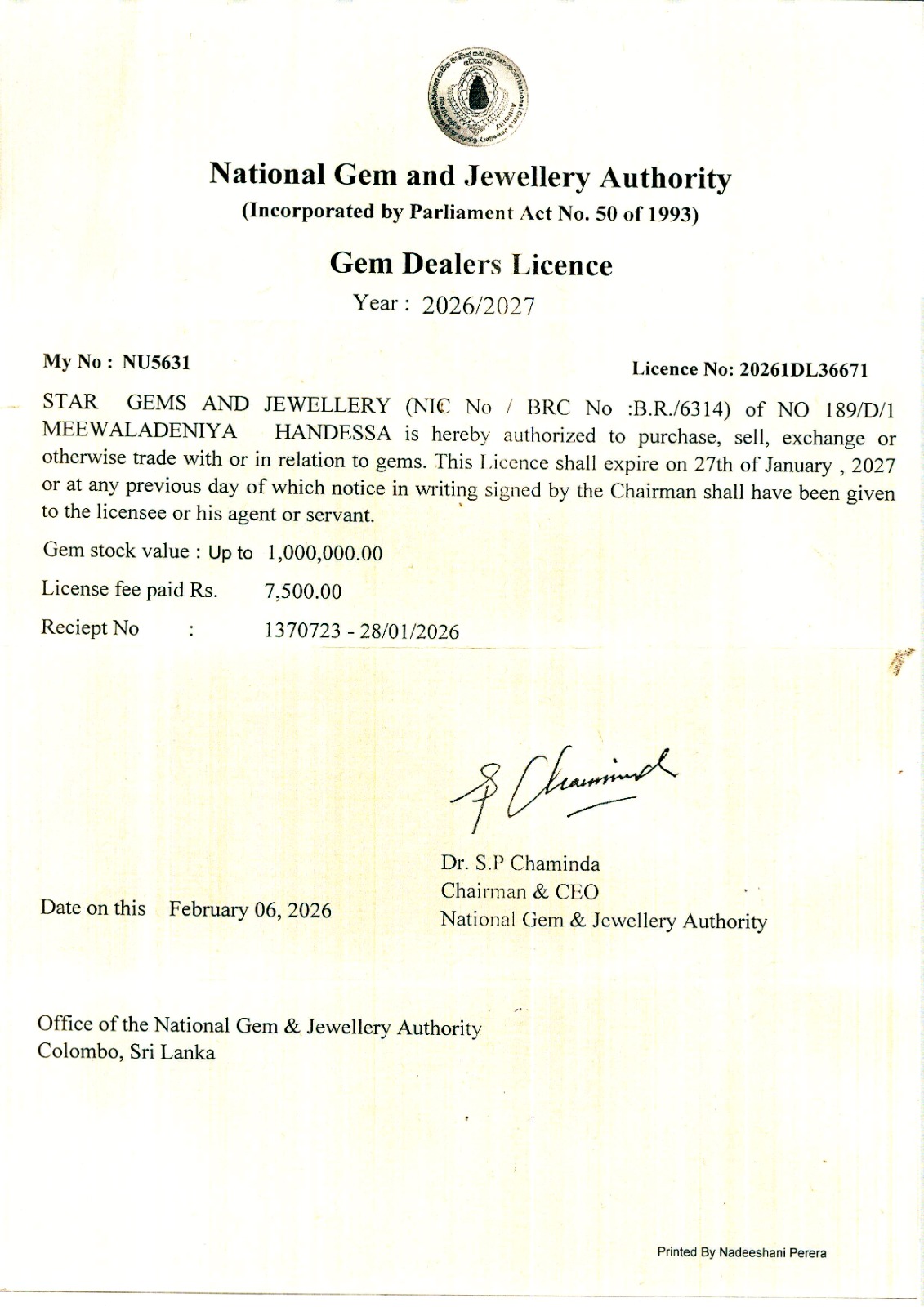 Every piece in our collection is a testament to Sri Lanka’s rich gemological heritage and masterful craftsmanship. We take immense pride in our certification from the Gem and Jewellery Authority of Sri Lanka, a guarantee of authenticity, ethical sourcing, and exceptional quality that our customers can trust.